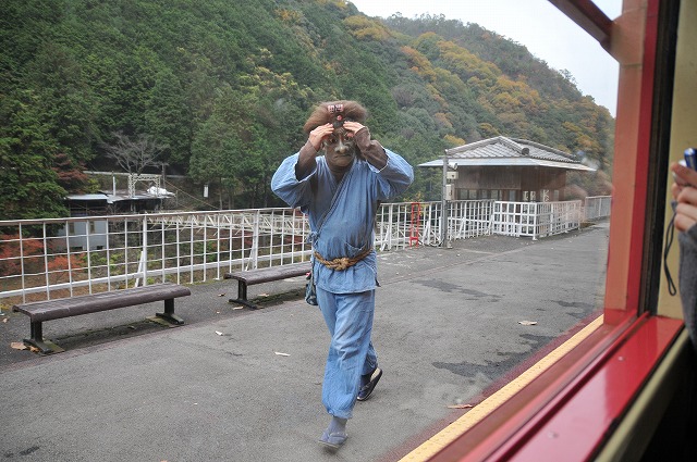 保津川に面した駅です。ホームには狸の置物がたくさんあります。またこの駅から酒呑童子がトロッコ列車に乗り込んでくることもありますよ。紅葉は美しいですが、ほとんどの客は終点の駅まで行くようですので、この駅で降りる客はほとんどいません。