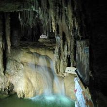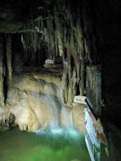 玉泉洞の全長は5000mもあり、鍾乳石は100万本以上で国内最多です。なかでも「地煙の滝」と呼ばれる場所がライトアップされていて神秘的な感じでした。
