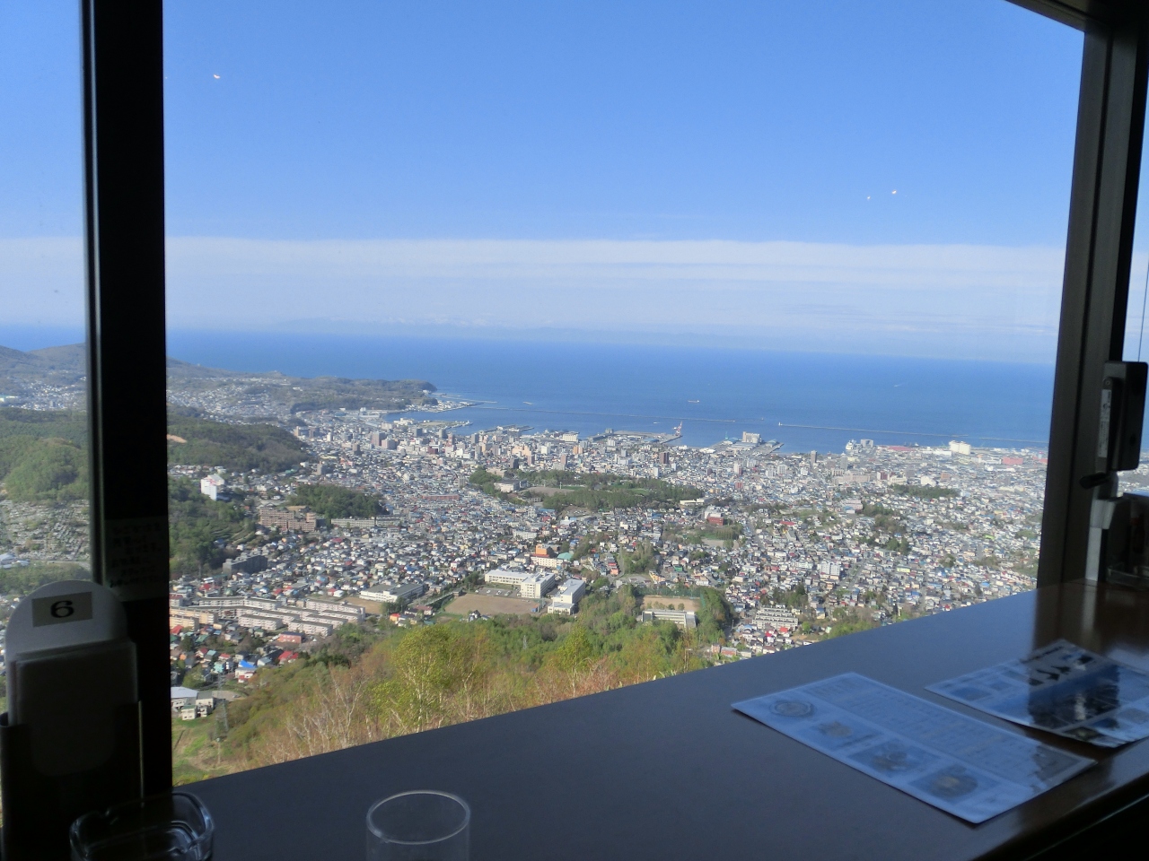 山麓駅駐車場に車をとめてロープウェイで往復しました。山頂駅には展望レストランがあってとても良い眺めです。小樽の街を一望できます。レストランの窓に面したカウンター席には双眼鏡が置いてあって、遠くのほうまで見ることができます。また、ロープウェイとドリンクのセット券がありお得です。