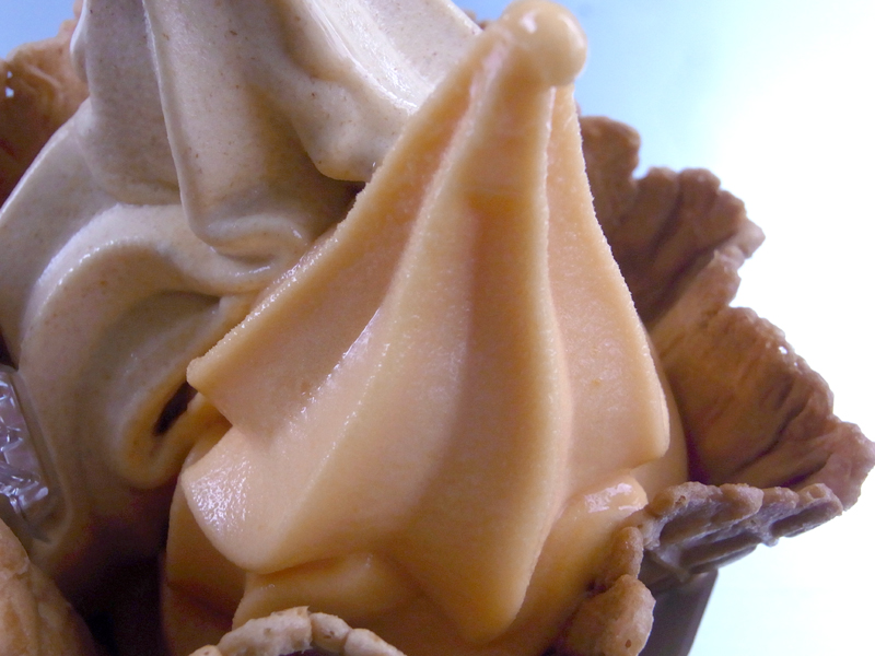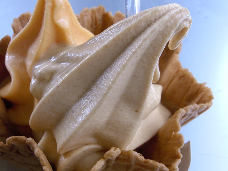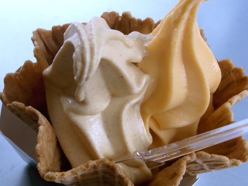 一つは、柿ソフト、もう一つは王道のバレンシアオレンジソフトクリーム。