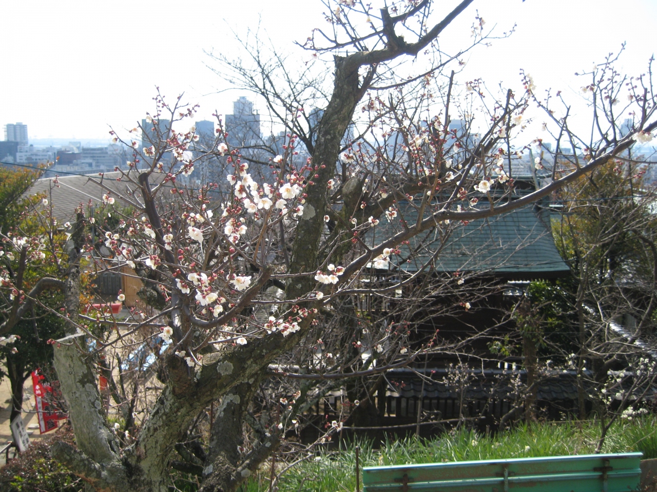 北野天満神社は異人館街を抜けた高台にあります。境内からは神戸港の景色を眼下に眺めることができ、展望の良い場所としても人気があるようです。裏山に登ると「梅花園」があり、神戸の梅の名所とされていますが、実際には梅の数は然程ではなく、風情を楽しむ程度でした。