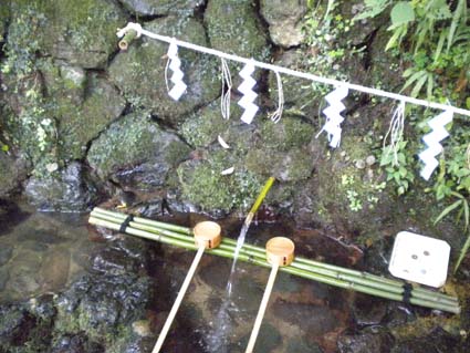 地パワーが地下水にとけこみ、その水が地上に現れるパワースポットといわれるところ。また恋愛にもご利益があるとのウワサが広まり、女子たちがたくさん訪れていました。灯篭(?)が立ち並ぶ参道はとても神秘的な雰囲気。水にひたすと文面があらわれるというめずらしい水みくじもありました。