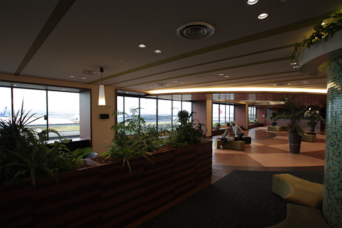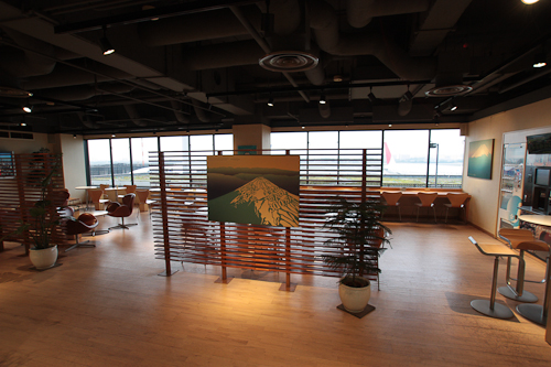 空港の機能や展望デッキなどについては他の方が書くでしょうから、私は「ラ・ゾーラ・テラス」という誰でも使えるラウンジのことを。空港ビル内に新しく出来た大阪空港ホテルへのアクセスラインの途中にあります。JAL棟とANA棟の中央付近の3階。誰でも使え、スモークキングエリアはきっちりと分かれているし(しかも多分喫煙者もそこは快適な場所と思う)、少し知れ渡ってきて学生が勉強する場所に使っていたりもしますが、電源もあるのでパソコン利用や携帯充電にも便利。知る人ぞ知る便利で快適な場所です(写真参照ください)。