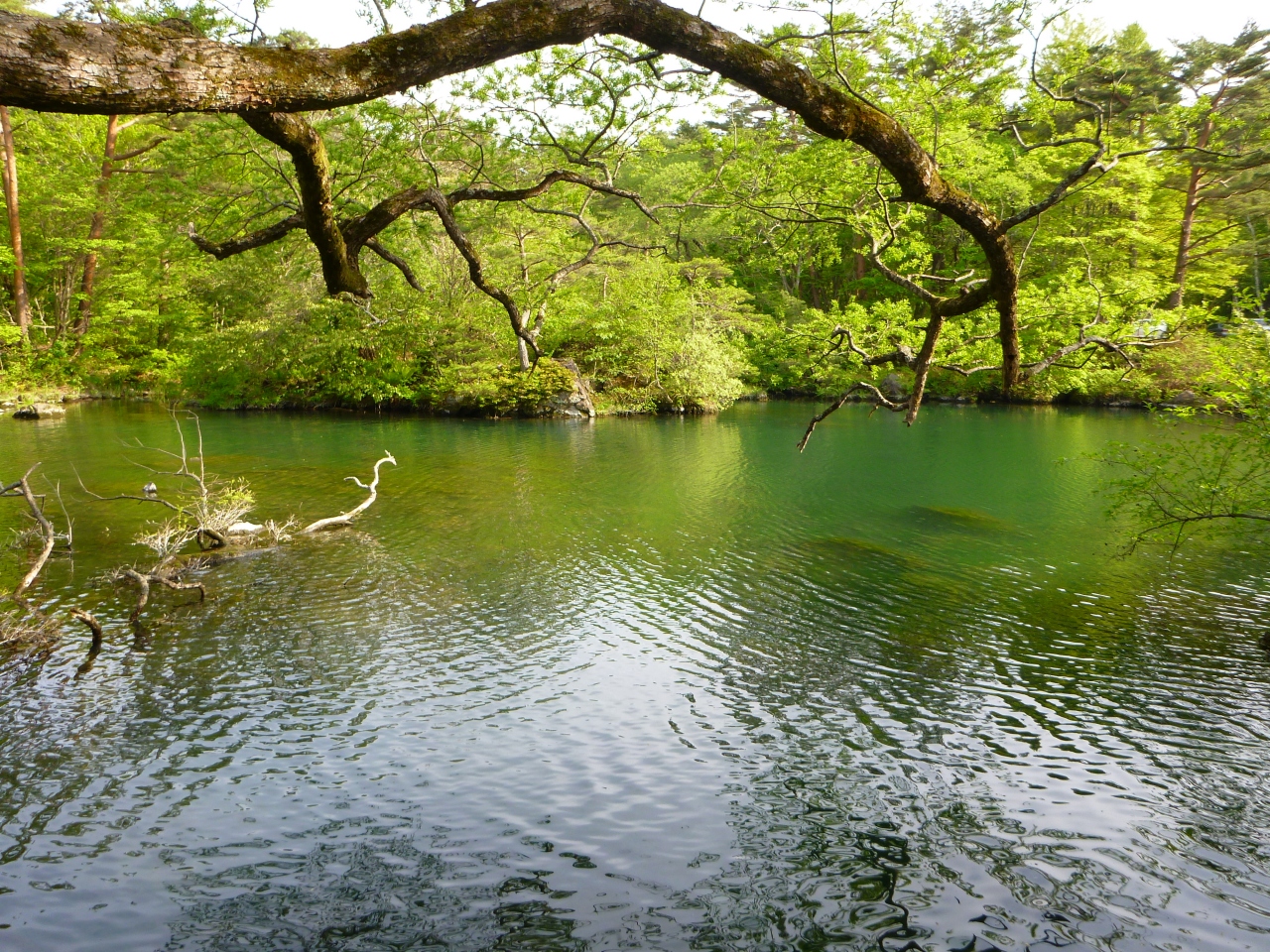 五色沼の桧原湖側の入り口の近くにある沼で、緑がかかった水の色はきれいですが、探勝路の中に入ればもっときれいな湖沼がおおくあります。また、道路沿いという観点から見ると、反対側の毘沙門沼のもうがきれいですので、時間がなければそちらを先に見ることをお勧めします。