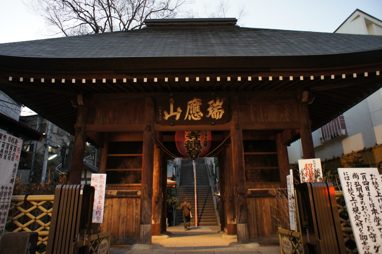弘明寺は、「ぐみょうじ」と読みます。高野山真言宗の流れを汲む横浜市内最古の寺院。本尊の木造十一面観音立像が国の重要文化財で、通称は「弘明寺観音」)。寺伝では、天平年間に、行基が観音像を刻んで一宇を建立したもの。なお、京急の弘明寺駅は丘の上にあるので、坂を下るように街に入っていく途中に寺があるという変わった地形です。写真は、山門ですが、センサーで灯がともるみたいです。日が暮れてからでも一礼して、参拝する人がポツポツいて、この寺が身近な存在であることが感じられました。