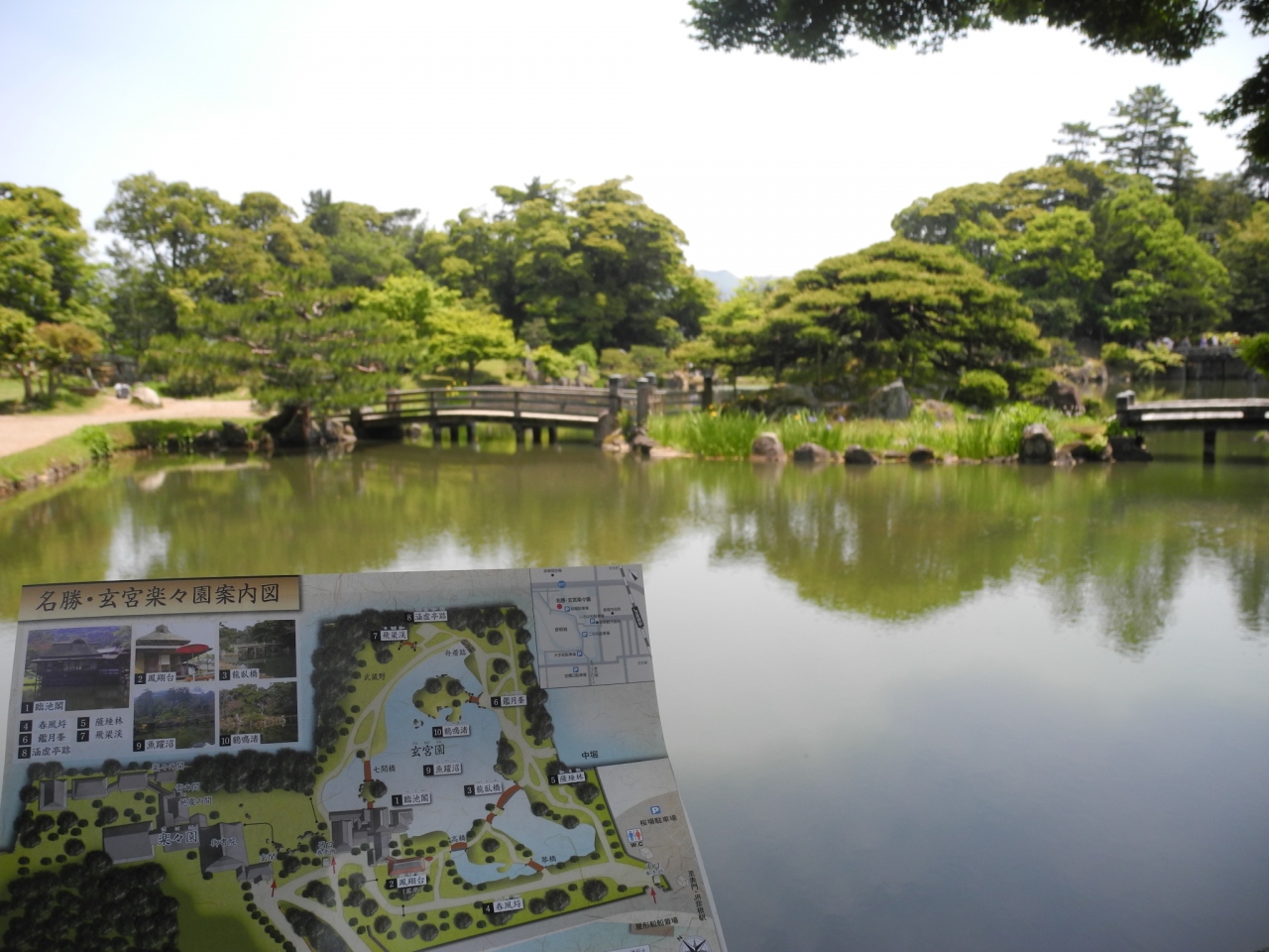 玄宮園(げんきゅうえん)は、 彦根城内に有ります。江戸時代初期の1678年に彦根藩4代藩主井伊直興が整備したといわれ、江戸時代後期の1813年には第11代藩主井伊直中の隠居屋敷として再整備されたそうです、ぜひ、一度、行ってみてください。