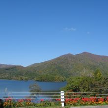 小野川湖は湖を縁取るような山と、青い湖面、そこに浮かぶ大小の島々のコントラストが非常に美しい。