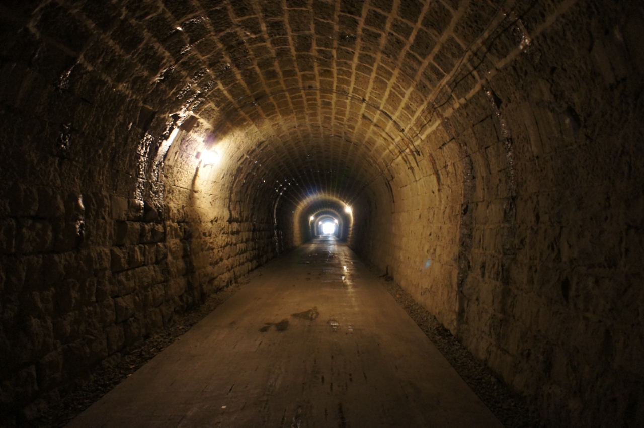 天城は、川端康成の小説「伊豆の踊り子」や松本清張の小説「天城越え」でも有名なのですが、「天城越え」といえば、何といっても石川さゆりの代表曲が浮かびます。そして、その「天城越え」の象徴的な場所がこの旧天城トンネルです。このトンネルは、明治37に完成、全長445.5メートル。写真のようにトンネルの側面は、すべて切り石で覆われている石造道路トンネル。日本に現存するものとしては最長のものだそうです。ということもあって、国の登録有形文化財であり、また、日本の道100選にも選ばれています。なお、バス停「天城峠」からはけっこう急な斜面の道を30分くらい登りますので、それなりの覚悟が必要です。