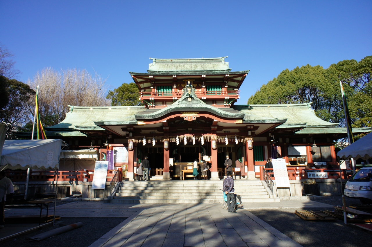 富岡八幡宮は、地下鉄東西線の門前仲町駅から歩いて15分くらい。深川八幡とも呼ばれて、日本最大の神輿と水かけ祭りが有名。この深川八幡祭は、江戸時代から、赤坂日枝神社の山王祭、神田明神神田祭と並ぶ「江戸三大祭」の一つ。境内には、神輿の展示館があって、ガラス越しにりっぱな神輿が飾ってありました。また、大相撲発祥の地でもあります。八幡様はもともと武家の神様で、将軍家に厚く庇護されていますし、近くに野見宿禰(のみのすくね)神社もありますし、ゆかりは深いと言えるでしょう。