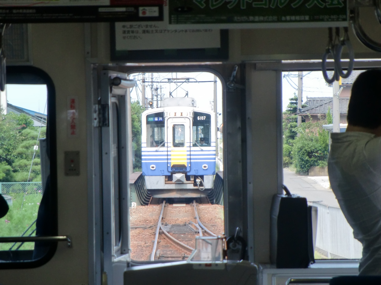 この駅で上り列車と下り列車が行き違うので、越前鉄道の電車を二つ同時に見れます。