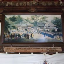了仙寺は、下田市内にある日蓮宗の寺。下田条約(日米和親条約付則13ヶ条)が締結された場所として有名です。ちなみに、日米和親条約が横浜で締結されて、開港が決まったのは下田と函館の二港。しかし、日米和親条約の中身は大雑把なものだったので、下田条約で細かな中身が決められ、この中で、アメリカ人が下田の街中を自由に歩く権利を与えられたということです。写真は本堂の正面に飾られた条約締結時の様子を描いた絵。了仙寺の境内に居並んだペリー艦隊の威容が窺われます。