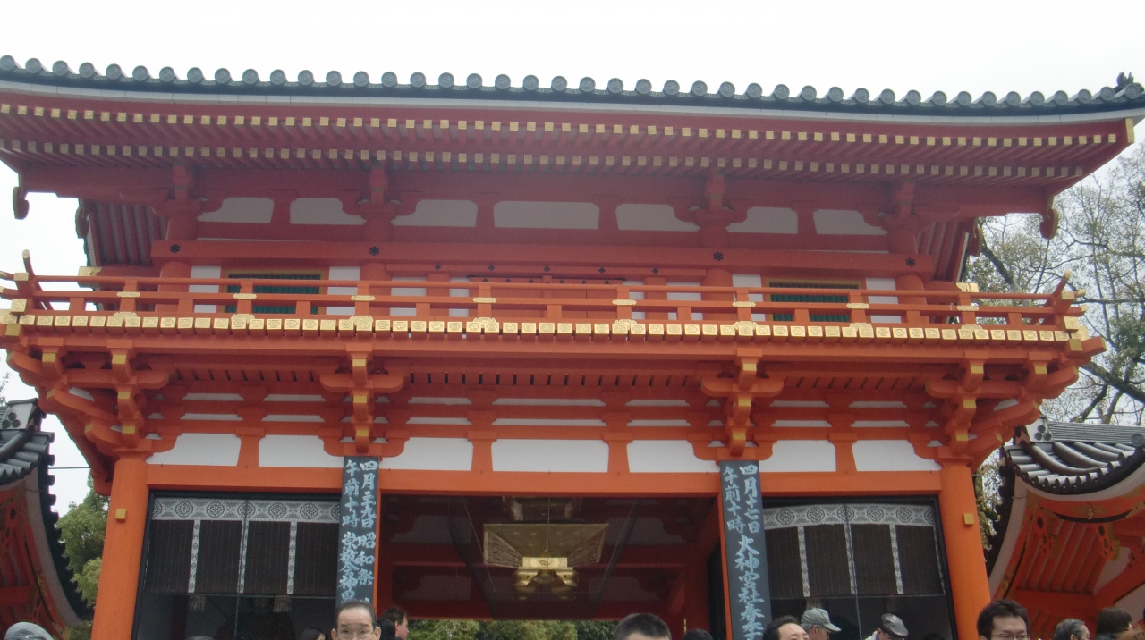 祇園四条通りを東に突き当たるとそこは八坂神社。いつも多くの人で賑わっています。