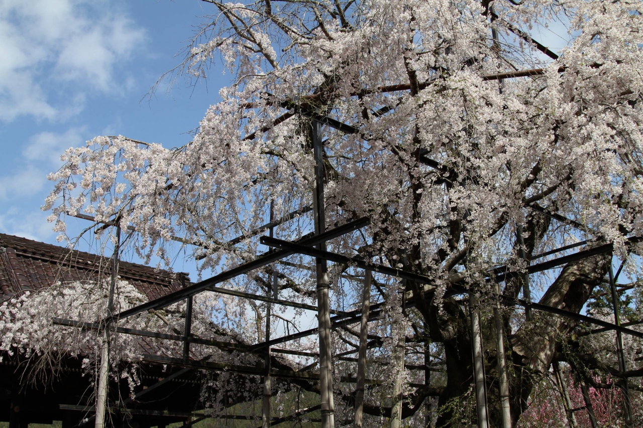 立派なしだれ桜が咲いているお寺さんです。枝ぶり、しだれ具合も最高です。夜はライトアップもされます。最盛期は、とても混雑するので、朝一番で出かけられることをお勧めします。(ご参考)お寺と道路を挟んだ、小高い丘にある「桜」も見事ですよ!!