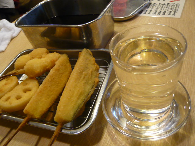 メニューは串揚げが中心。食べ放題コースもあるようですが、1本100円からあるので、ささっと摘むのに便利です。