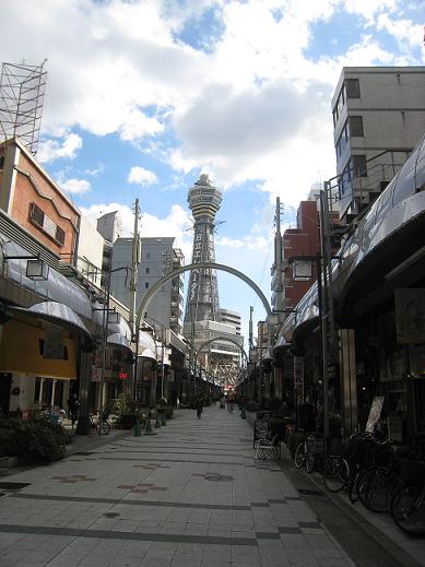 大阪城観光の後、通天閣のある新世界へ向かいました。新世界の周りにはたくさん駅がありどの駅で降りればいいのかわからず駅員に尋ねました。地下鉄谷町六丁目駅から電車に乗り、途中、堺筋線に乗り換え恵美須町駅で降りることに。出口から出るとすぐ商店街で、真正面には通天閣が!!