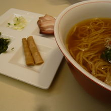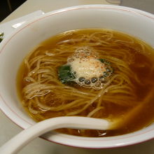 スープの上にはふわふわのタレが乗ってましたが、すぐに溶けました。お味の方は魚介のダシがたっぷり。