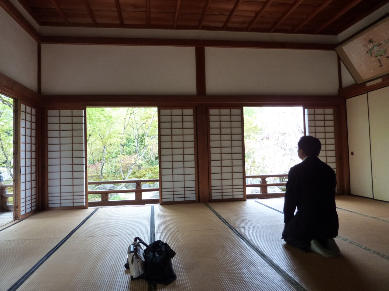 - 心落ち着けて院の窓から見るもよし、庭に立つもよし。