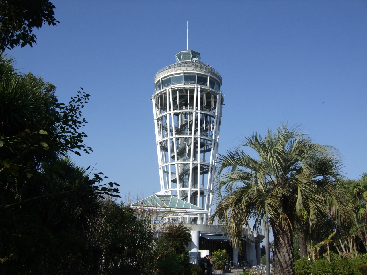 サムエルコッキング苑は、江島神社を抜けて、灯台の方に歩いていくとすぐ。横浜に住んでいたアイルランド人貿易商のサムエル・コッキング氏が菜園として購入したのが始まり。その後は、明治期に植物園として開園されたりしたのですが、今では、藤沢市立の有料観光施設。敷地内はさほど広くはないのですが、周囲を海に囲まれているので、開放感はあります。なお、灯台は、別料金。この灯台は江ノ島電鉄の経営するもので、江ノ島電鉄開業100周年記念事業といして建設されました。高さは、60 mです。