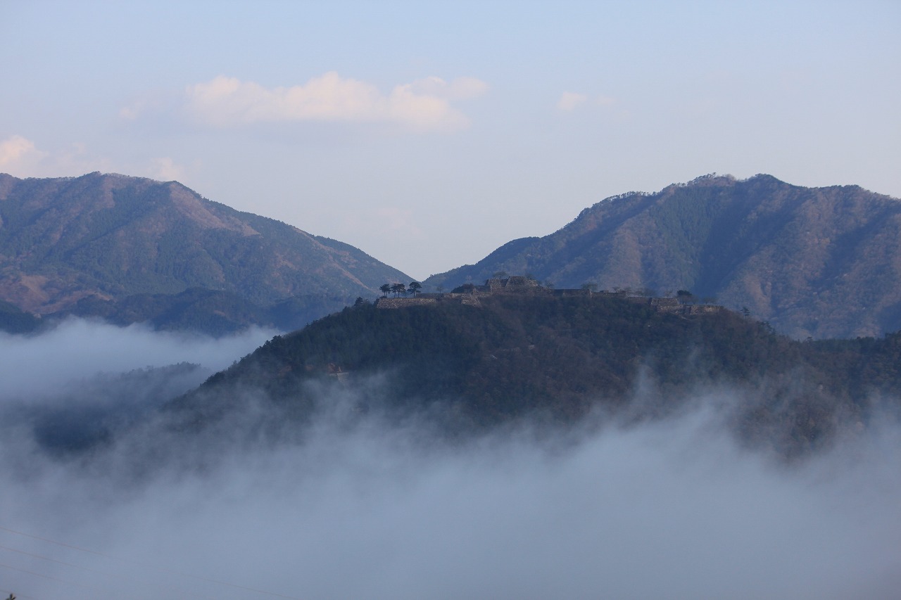 - 城址から見る雲海の景色もいいですが、やはり向かいの立雲峡からみる城址が最高です。