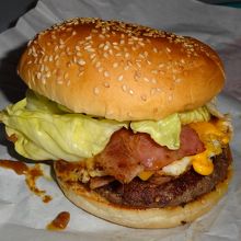 北谷町のアメリカンビレッジにあるハンバーガーショップです。人気No1の「テキサスエクストラバーガー」は、ジューシーなハンバーグ、ベーコン、玉子などがサンドされており、ボリューム満点です。ハンバーガーの他にも、オリジナルスムージー等のドリンク類も充実しています。