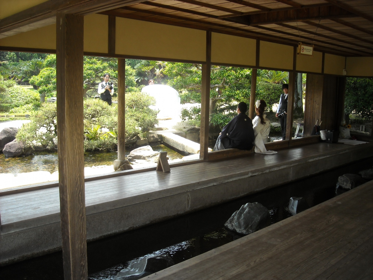 岡山後楽園に入ると、いたるところで結婚記念の撮影をしている人たちを何組もみました。きっと写真のバックになる庭園の風景が良いからなのでしょう。