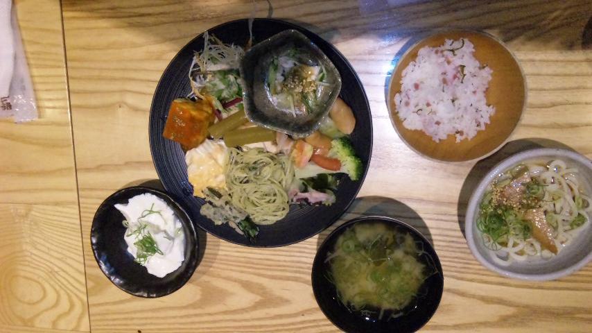 サラダ、麺類、豆腐、パスタに揚げ物(大体、旬の野菜の天麩羅)、