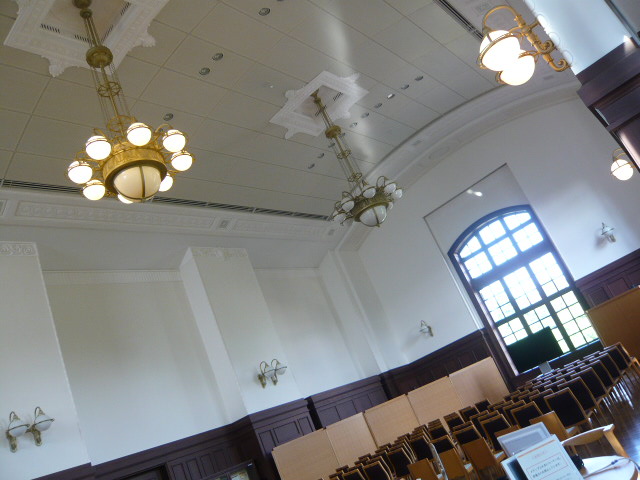 明治時代に帝国図書館として建てられた歴史的建造物を改修した建物で、外壁などがよく見えるよう、古い建物にガラスを被せたような構造で工夫されています。