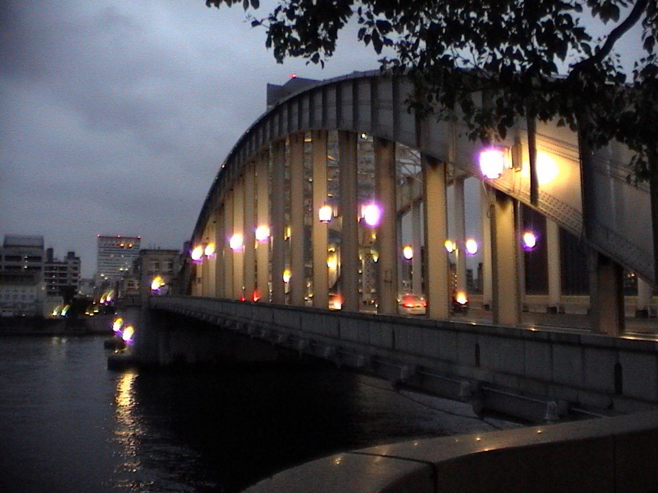 昔は大型の船が通るときに跳ね上がったそうで有名になったようですが、今は跳ね上がることはありませんが、広く整備されて夜はライトアップされるので、散策にちょうど良いです。