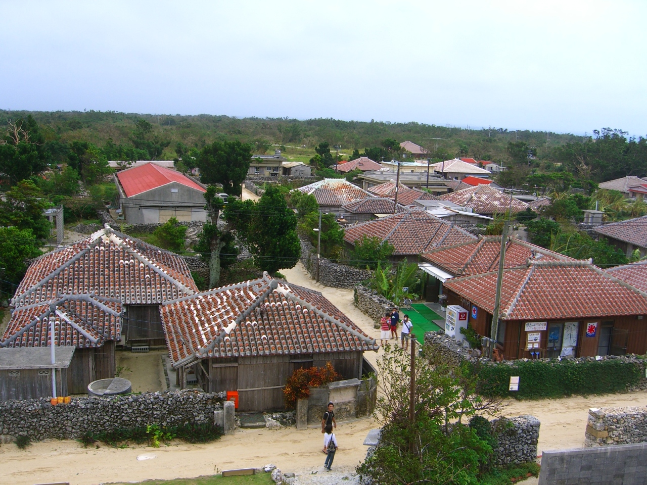 集落は竹富島の真ん中あたりに固まっていいて赤瓦の屋根が特徴的で庭に入る前にはシーサーが飾ってあります。集落には日中は石垣島からの観光客が多くいて賑わっていますが夕方、観光客が帰ったあとの静けさはなんとも良い雰囲気です。道は砂になっていて朝は家の人たちは箒で掃いています。島一番高い「なごみの塔」からの景色が良いです。
