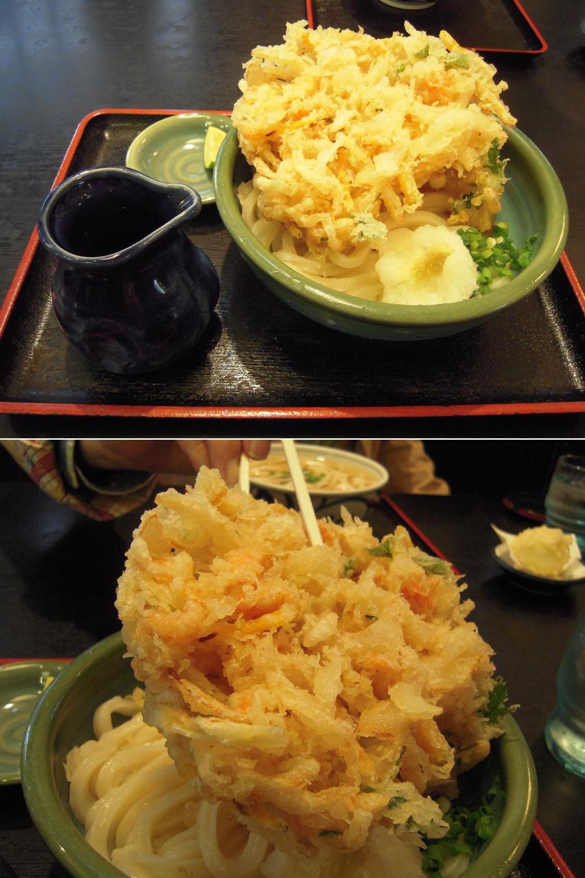 とても、大きなかき揚げうどんで有名なお店。