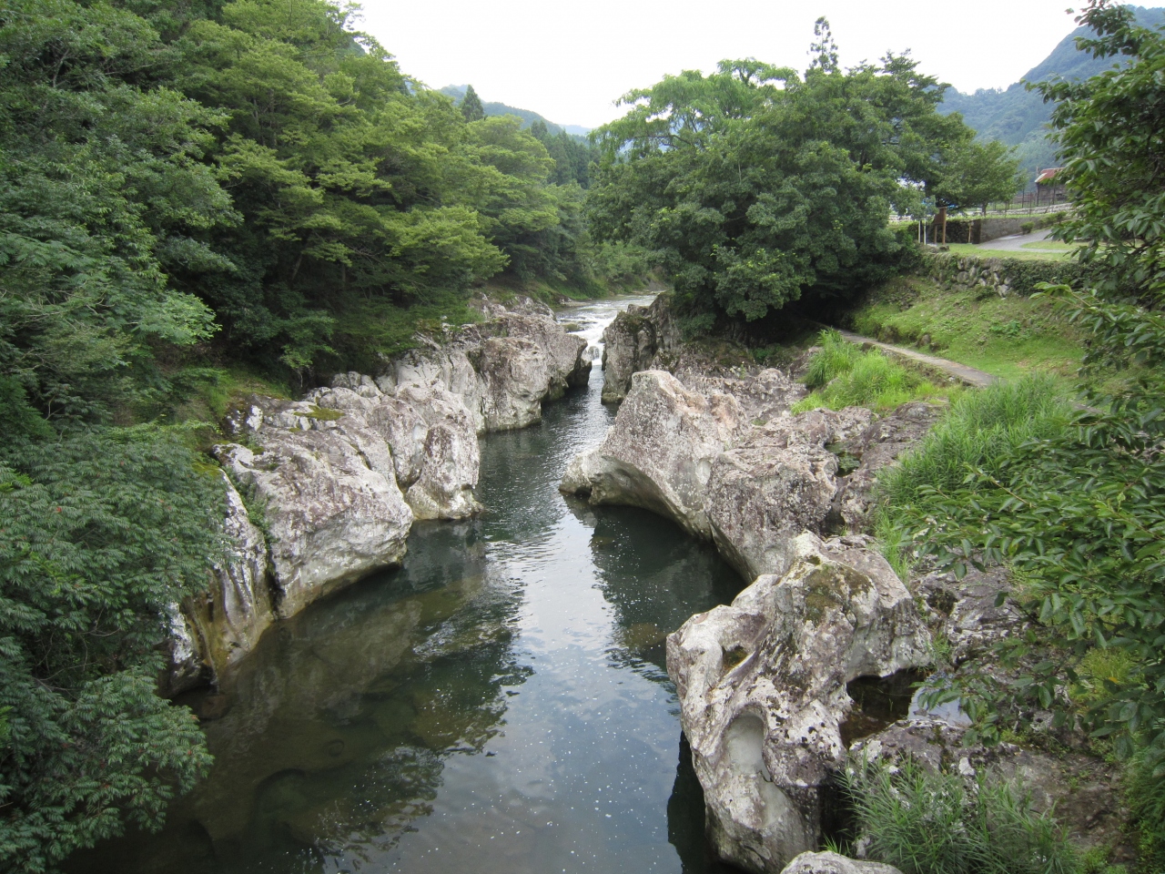 午前中、深耶馬渓へ行ったついでに、ガイドブックに載っていた奥耶馬渓に寄りました。昔流行った観光地という感じの深耶馬渓に比べ、奥耶馬渓は秘境とも言えるひっそりとした穴場の印象‥‥のワリには遊歩道、無料駐車場、洋式の公衆トイレなどが小さいながらも整備され、たいへん便利で気に入りました。