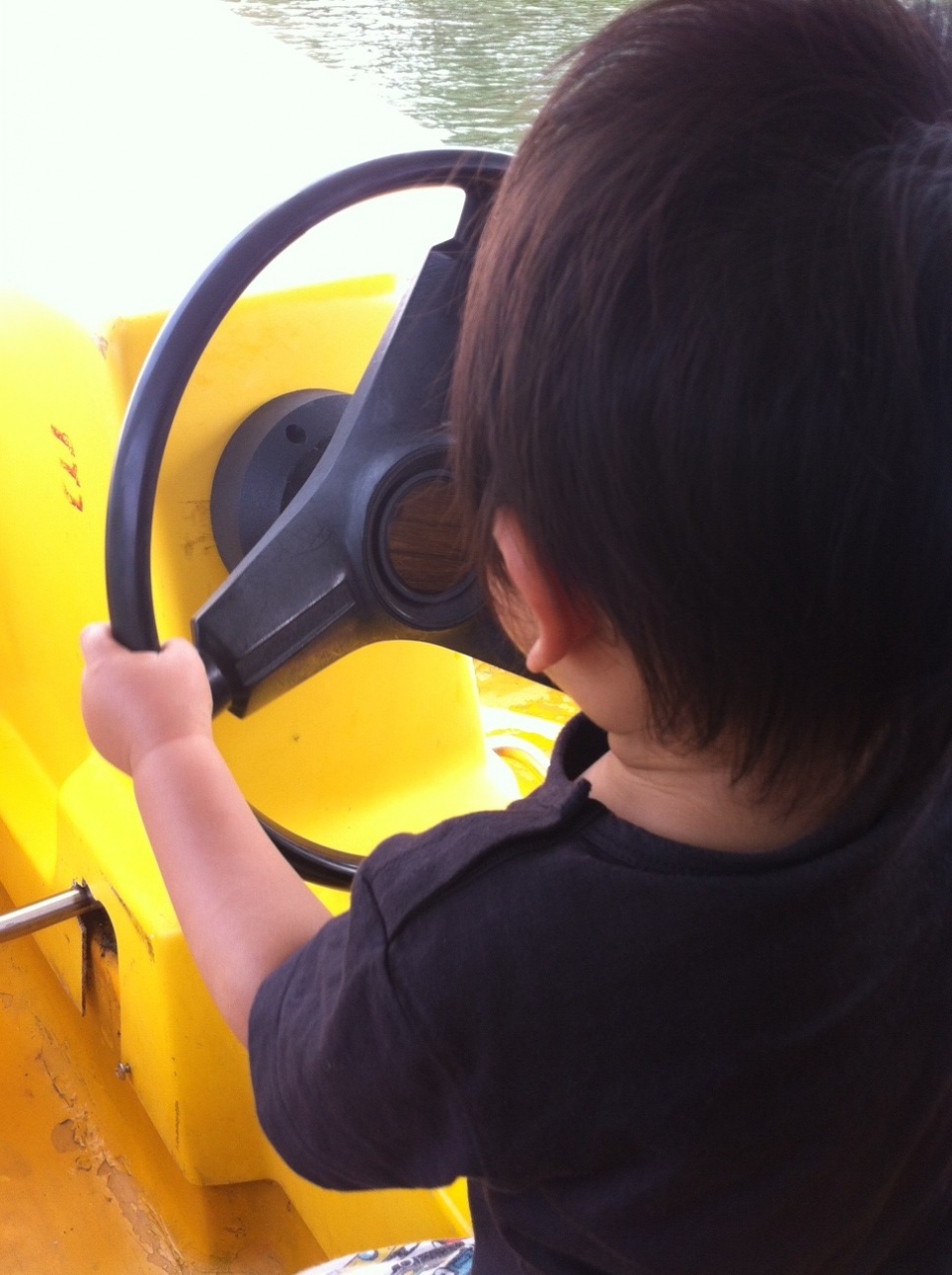 イングリッシュガーデンにある池には屋根付きの白鳥ボートがあり、子供もハンドルを握れるので楽しそうに運転していました。