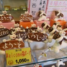 小さな店舗ですが、お店の中に入ると猫グッズがたくさん!ねこファンにはたまらないお店です。お店の方いわく、「作家さんが1つ1つ手作りで制作しているので、表情が全部違っておもしろいんですよ」とのこと...。確かに、キツイ顔あり、ふにゃ系顔ありで、見ているだけで癒されます。記念に、のびをしているにゃんこをGETしました。