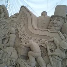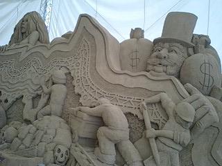 水で混ぜた砂だけで作品が作られているので時期の終わりに