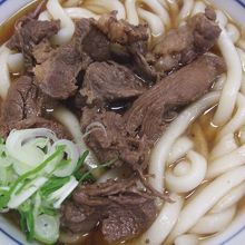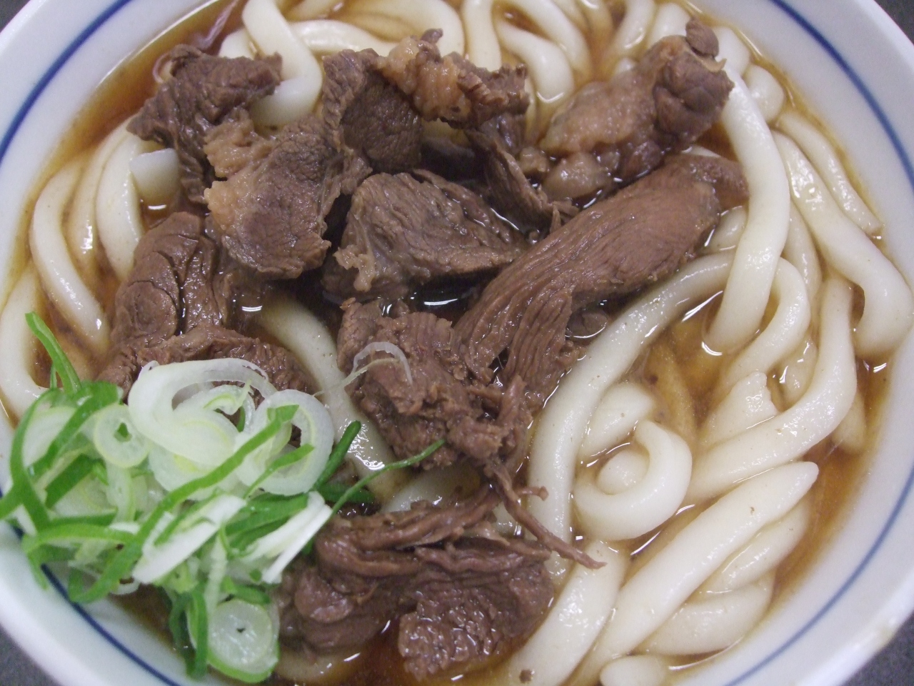 中村屋は、上田駅から歩いて5分足らず。天神通りという昔は商店街で賑わっていたんだろうなと思える通りにありまして、目立つ「肉うどん」の看板が目印です。この写真の肉うどんは、馬肉の肉。だしを馬肉でとるのですが、そのだしを取った後の肉がのっています。しかし、この肉はだしをとった後とはいえ、しっかり歯ごたえがあります。鯨のみぞれ煮の缶詰がありますが、あんな感じ。ちょっと濃い目のだしに麺は太目のもちもち麺。歯ごたえの残る肉の組み合わせは4代目に引き継がれ、伝統ある名物と呼ぶに相応しい逸品でした。