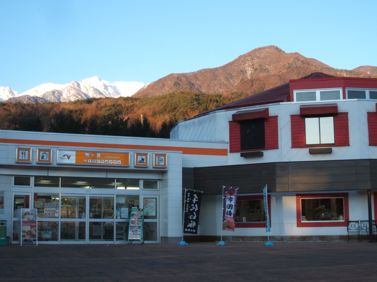 中央自動車道の駒ケ岳SAは、私達が長野へ行く時、いつも立ち寄るサアビスエリアです。ここからは、中央アルプスの山々や南アルプスの山々が望め、ここに立ち寄ると信州に来たなと感じます。もっとも南アルプスは、下りのSAからの方がよく見えますが。