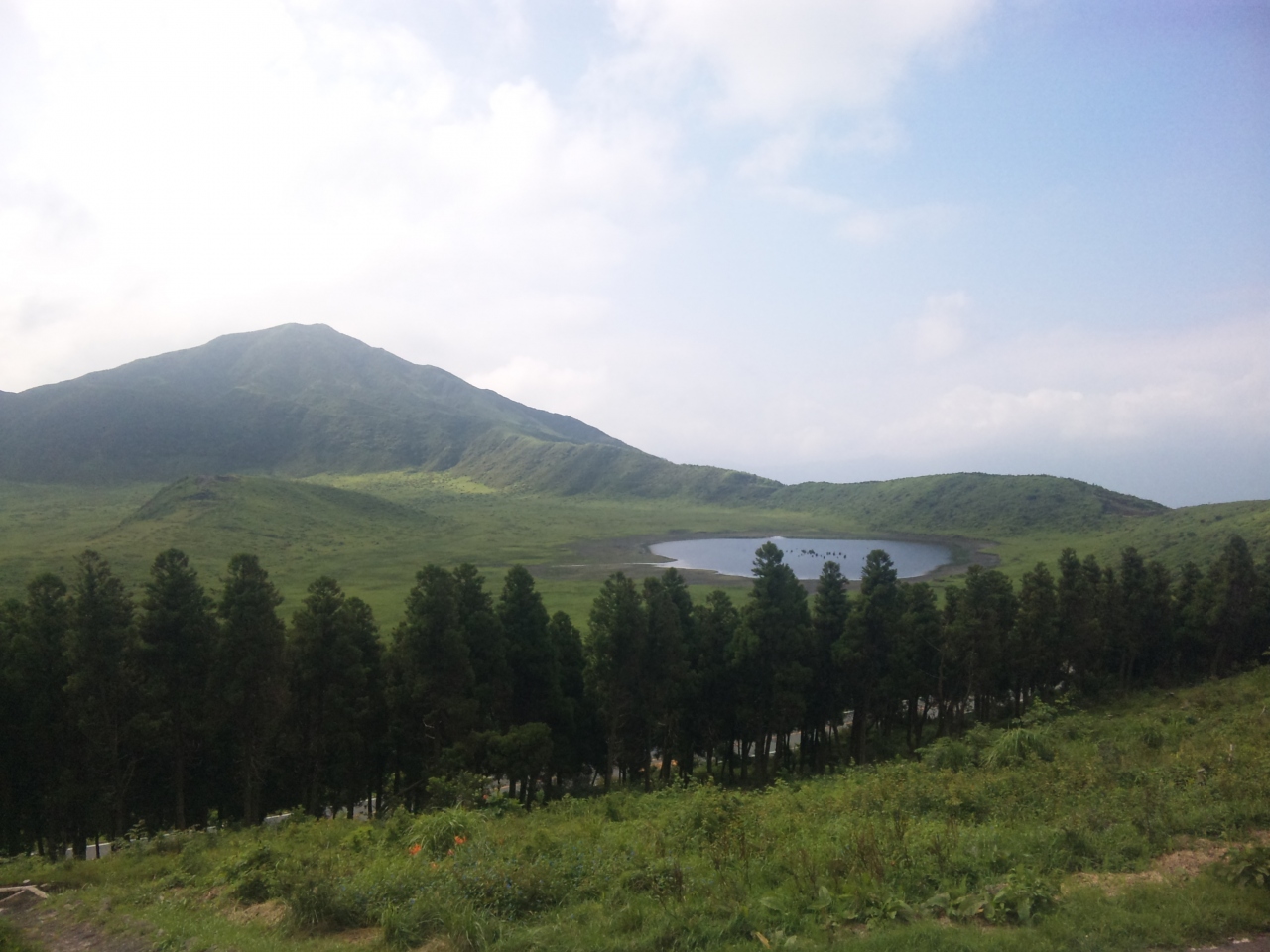 左手には阿蘇山の噴火口から煙が出ているのが見えました。