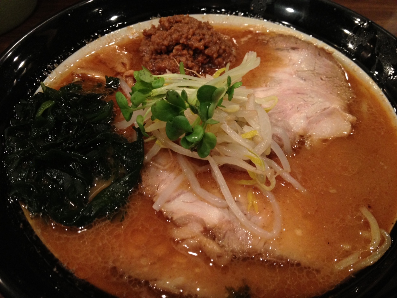 お店の入口に「つけ麺」と書いた提灯があり迷いましたが、今回は「焦がし味噌ラーメン」をいただきました!コクのあるスープに焦がしの風味が加わり、なかなかインパクトのあるスープ。麺は、ストレート麺で、ちょっと印象が薄い感じ...。麺とスープどちらも!とはいかないのが難しいところ。