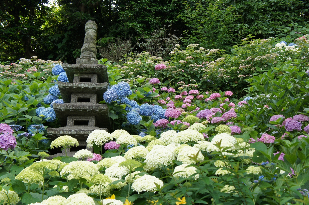 入口で整理券代わりに番号の入ったウチワをもらいました。アジサイを見るには45分待ちとのことでしたが、チケットを買ってから入山まで、きっちり45分待ちました。寺は意外と広く、ブラブラしていると何とか時間を過ごせました。