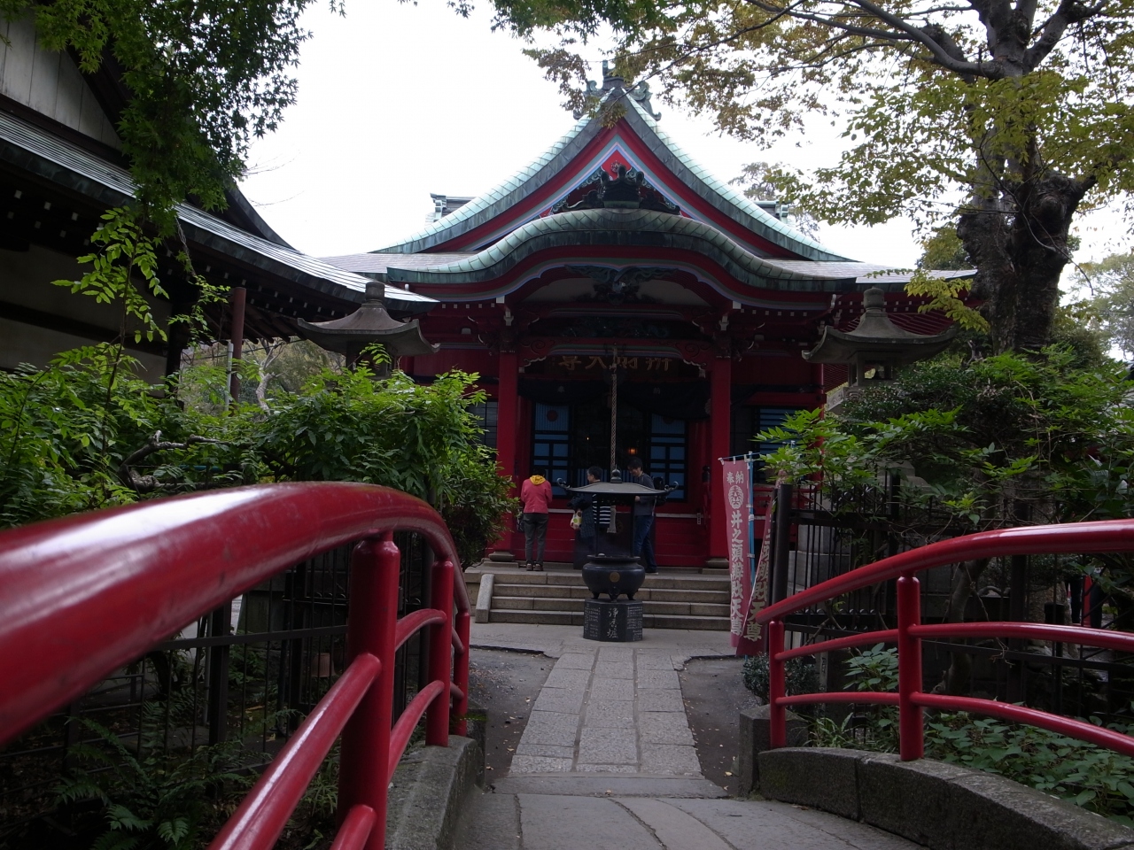 吉祥寺・井の頭公園の中にあります。弁財天はもともとはインドのヒンドゥー教の神様だそうで、なぜこの場所に?と思ってしまいますね。弁財天は公園の池の中に浮かんでいるように見えますね。池に映る弁財天もきれいですよ。