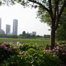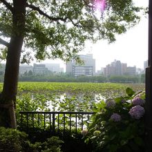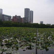 大きな池にたくさんの蓮があり、良い風情です。7月くらいには、ピンク色の蓮の花が見られるそうですよ。