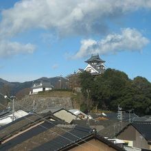 福知山駅に到着する手前、右側に、福知山城が見えます。