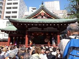 浅草寺の横にある浅草神社にも立ち寄りました。この日は浅草神社のお祭り(三社祭)だったので神楽殿にてちょうど『びんざさら舞奉納』が始まったので拝観することが出来ました。TVカメラやアマチュアカメラマンと思われる方々がたくさん撮影されていました。