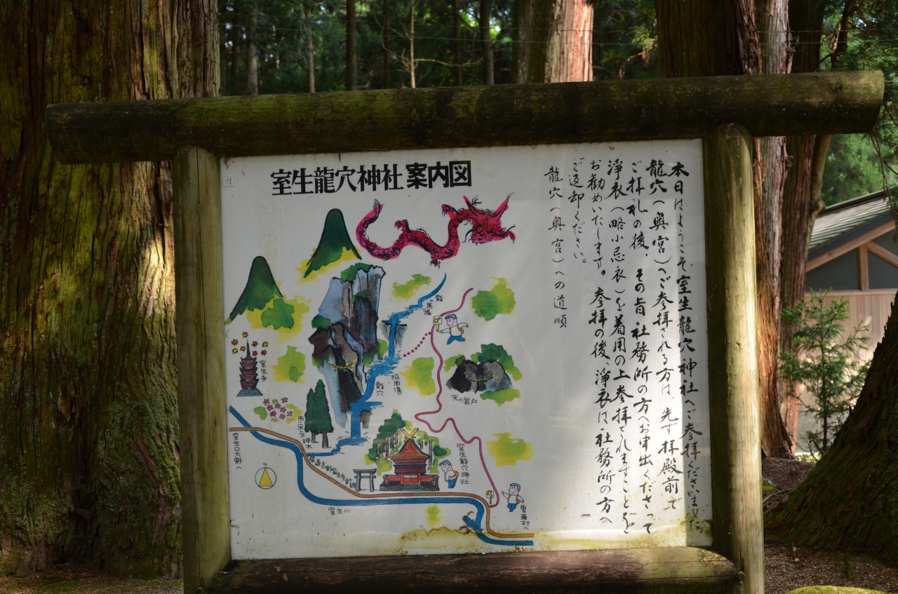4trコミュ「奈良おしゃべり館」のオフ会で行きました。室生寺前駐車場を通り過ぎ、更に奥へと行きます。少し行くと左手に神社があり、「吉祥龍穴神社」の立て札があります。境内に入ると鬱蒼と茂る巨大なご神木(大人4人くらいが手を一杯に広げてやっと届くくらいの太さ)があります。正面に神社がありますが、何か霊気を感じました。神社の裏手に行く山道を歩いて行くと、下に龍が住むという洞窟があり、しめ縄が掛けられています。手前には祈祷所もありました。真夏でも木が生い茂り水が流れているところもあるので涼むには良いかも知れませんが、ヤブ蚊対策が要ります。秋口にはマムシにも注意。