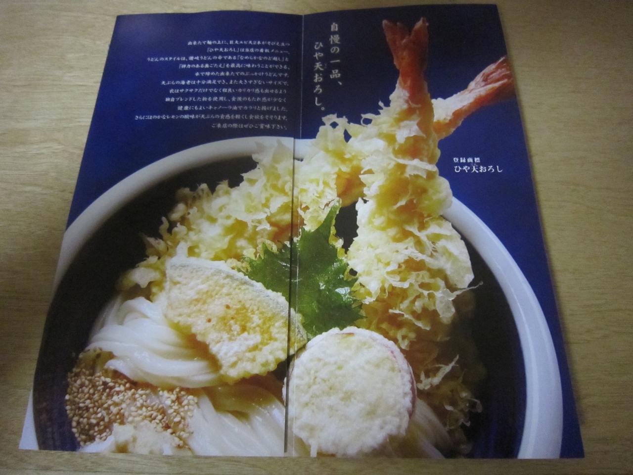 「ひや天おろし」が有名です。ここに来たらこれしかありません。ほかのものも間違いなくおいしいのでしょうが、これしかありません。うどんの腰はしっかり、天ぷらはサクサク。天ぷらはサクサクがよいという方はおでんのお皿を借りて、つゆをかける前に取りだすのがお勧めです。衣が溶けてとろとろになるのが好きな方はそのまま天ぷらの上からつゆをかけてどうぞ。大きなえびが2本乗って945円は安い!ただしいつも行列ができていて30分ぐらい待つのは普通です。