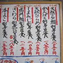 海が近いのですべての魚が新鮮でおいしいです。地物の刺身の定食が2000円前後、刺身は分厚くて食べ応えアリ。鳴門ワカメのお味噌汁は大きなお椀に白身魚の切り身が入っていておいしい。入り口に値段の入った看板が出ていて安心です。食事時には行列ができます。