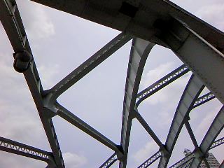 土佐堀通から川口地区へ斜めに橋を渡すため、その当時には大変設計が難しい構造になっているそうです。