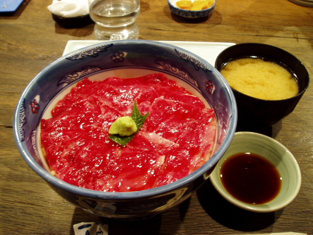 鉄火丼みたいに生肉がのっかっています、上品な脂が口の中に広がり美味しかったです。