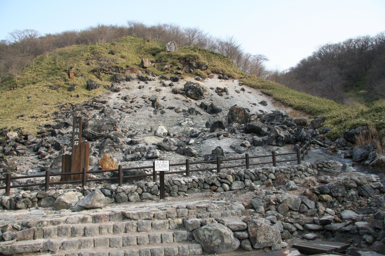那須ロープウェイに行く途中に寄ってみました。元々予定はなかったのですが、ネーミングが「殺生石」と言う事で興味が湧き寄って見ると、確かに殺風景で、なっとも言えない風景。所々にガス発生の為立ち入り禁止の立て札。それらを見て、何となく名前の由来が分かりました。ドライブの途中等で寄ってみるのも良いかもしれません。