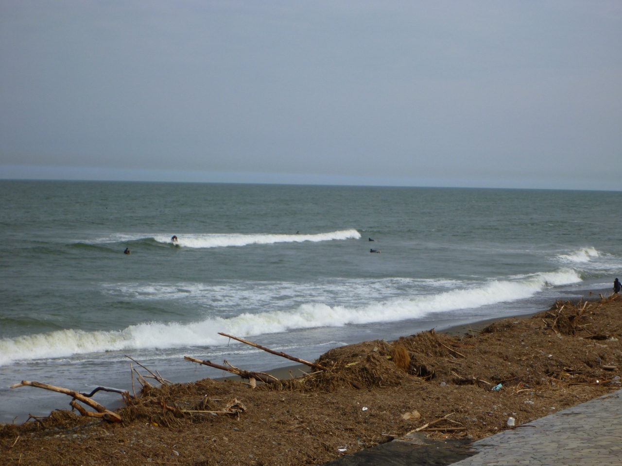 すでにこのシーズンでもサーファー・ボディボーダーは多く集まっていて、海の中に入っていました。風が強く海は濁り気味でしたが、完全復旧が待たれるところです。